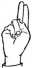 На ћирилици написано АНГЕЛИНА ОКОШАНОВИЋ састоји се из 18 слова [?]. Исписано ћириличном једноручном азбуком за глувонеме:
